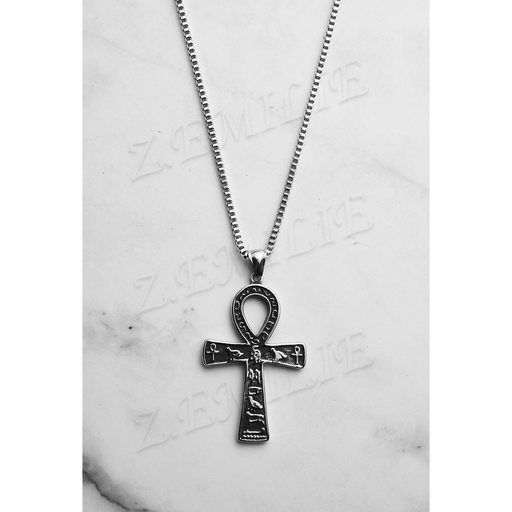 Collier maille vénitienne, taille 60cm Matière: acier inoxydable Taille pendentif: L36mm x H53mm