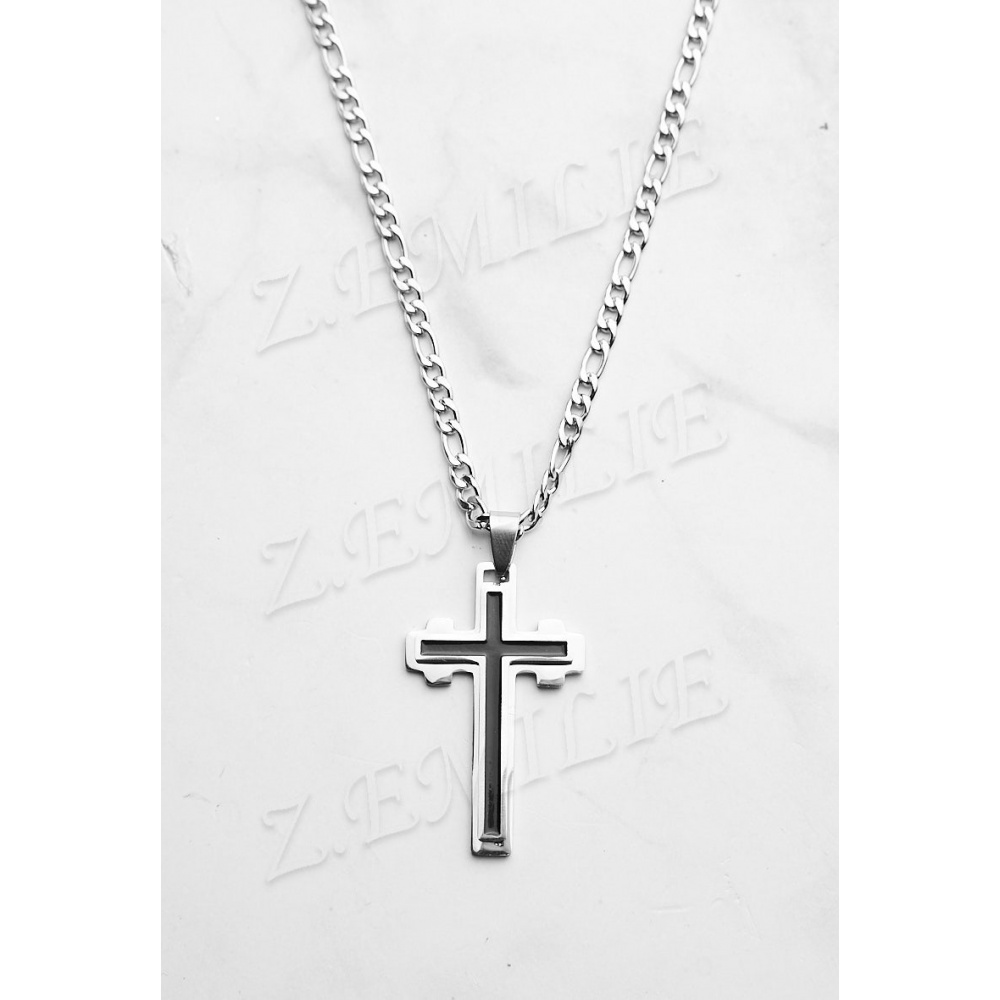 Collier maille figaro, taille 60cm Matière: acier inoxydable Taille pendentif: 25mm x 42mm