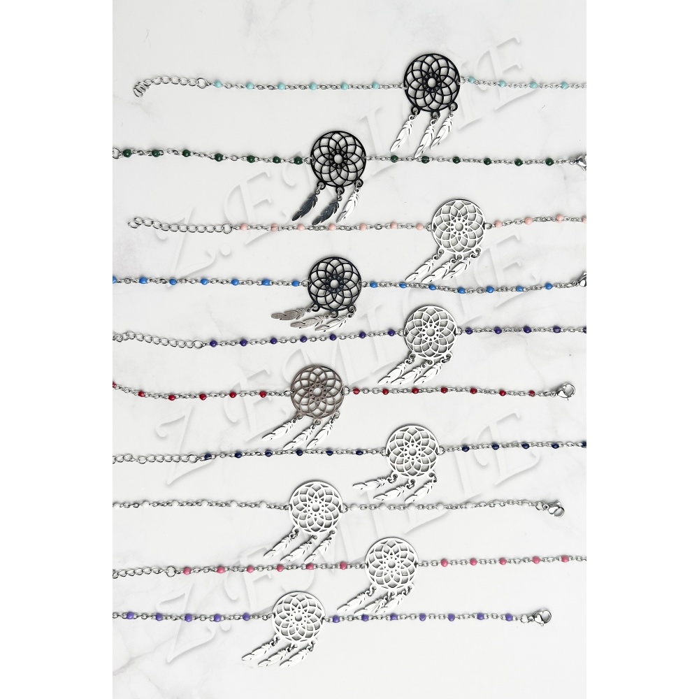 Bracelet acier attrape rêve émaillé couleur par paquet de 10 pièces