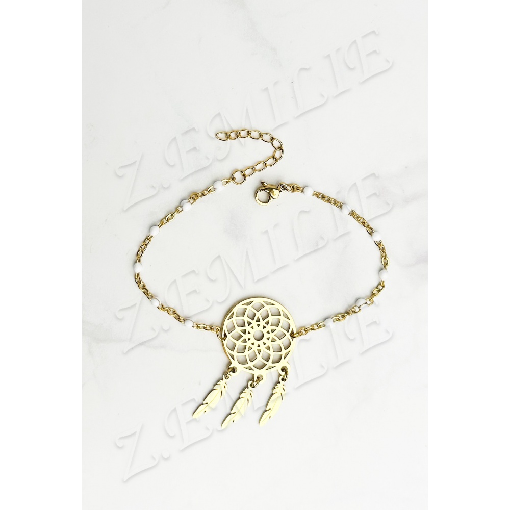Bracelet acier attrape rêve émaillé blanc par paquet de 10 pièces