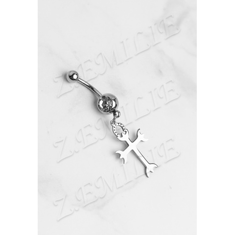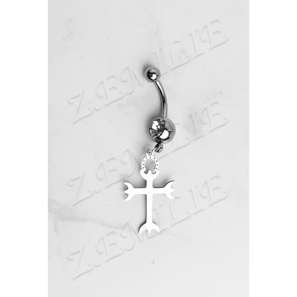 Piercing nombril acier croix trident Camargue